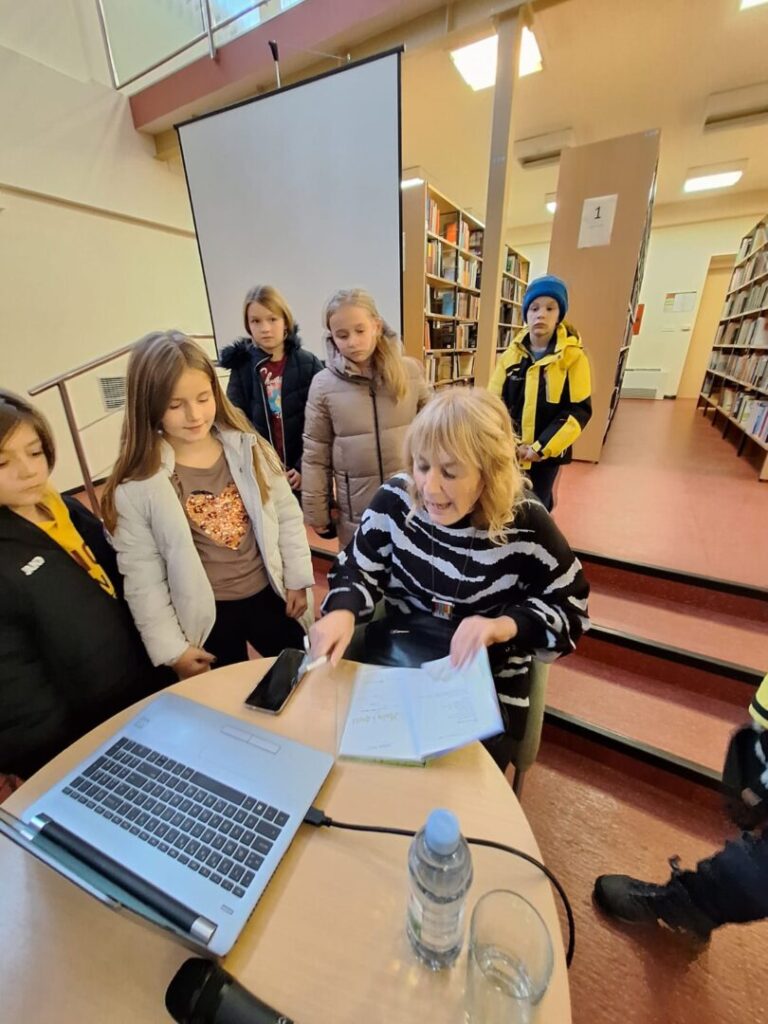 Naši učenici razredne nastave su na poziv Samostalne narodne knjižnice u Gospiću prisustvovali književnom susretu s autoricom Sanjom Pilić. Nakon susreta s književnicom imali su radionicu izrade božićnih ukrasa.