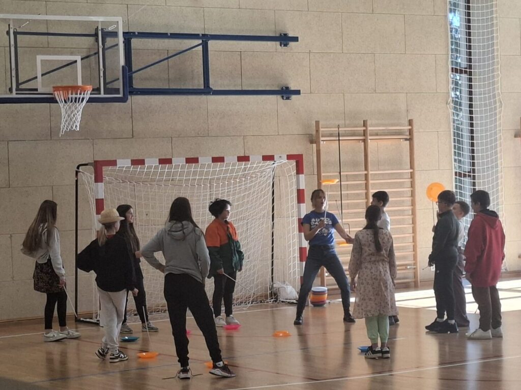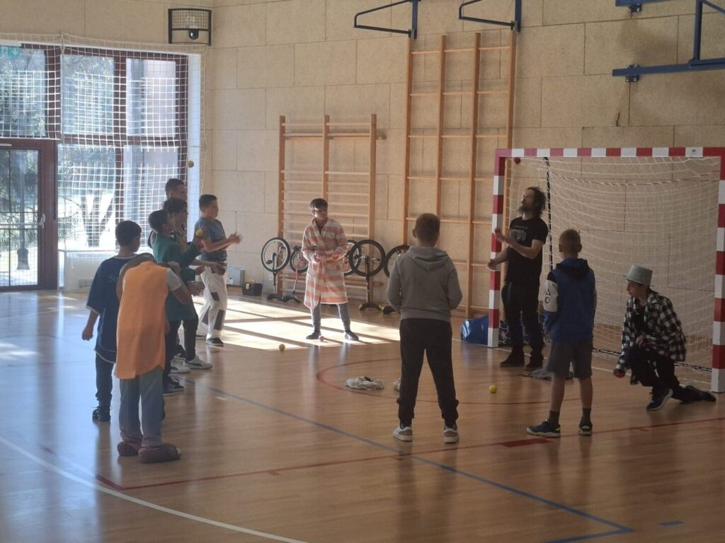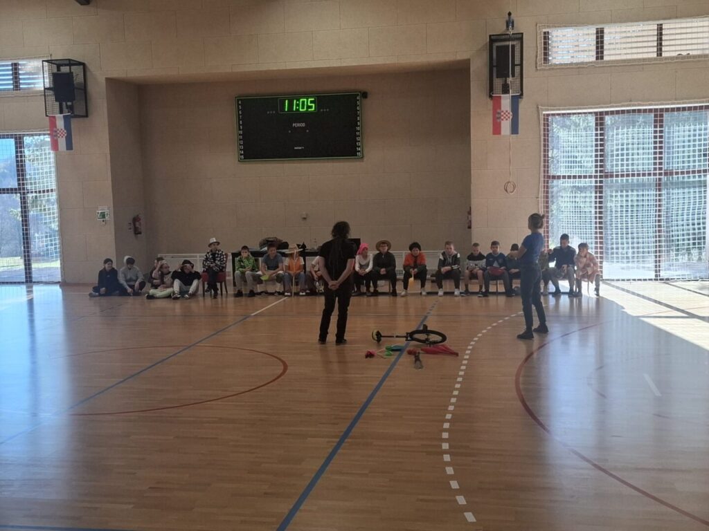 U školskoj dvorani se danas održala radionica “Klaun i ja” za učenike od 5. do 7. razreda. Riječ je o cirkusko-dramskoj radionici na kojoj su se učenici imali priliku okušati u cirkuskim vještinama (zemljane vještine: žongliranje, balansiranje, monocikl i zračne akrobacije: ples na svili) te su učili o tehnikama kazališnog klauna.