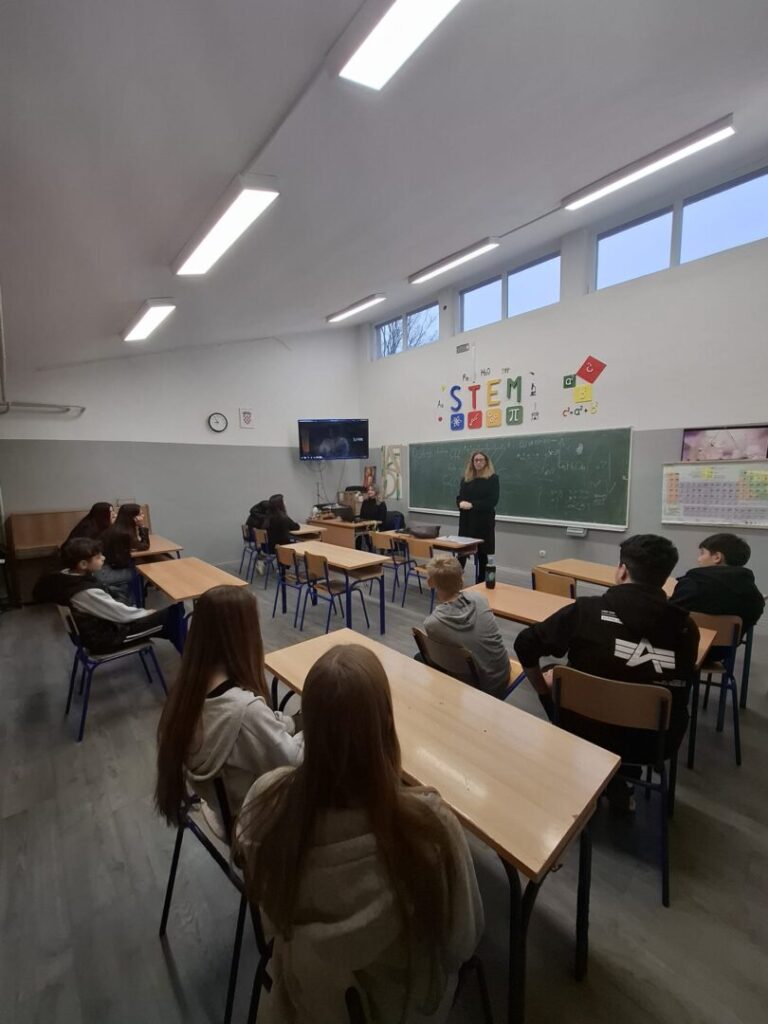 Djelatnica MUP-a Kristina Orešković održala je dvije radionice u 7. i 8. razredu. Jedna radionica održana je u sklopu projekta “Zdrav za 5” na temu alkoholizma, a druga na temu cyberbulling-a.